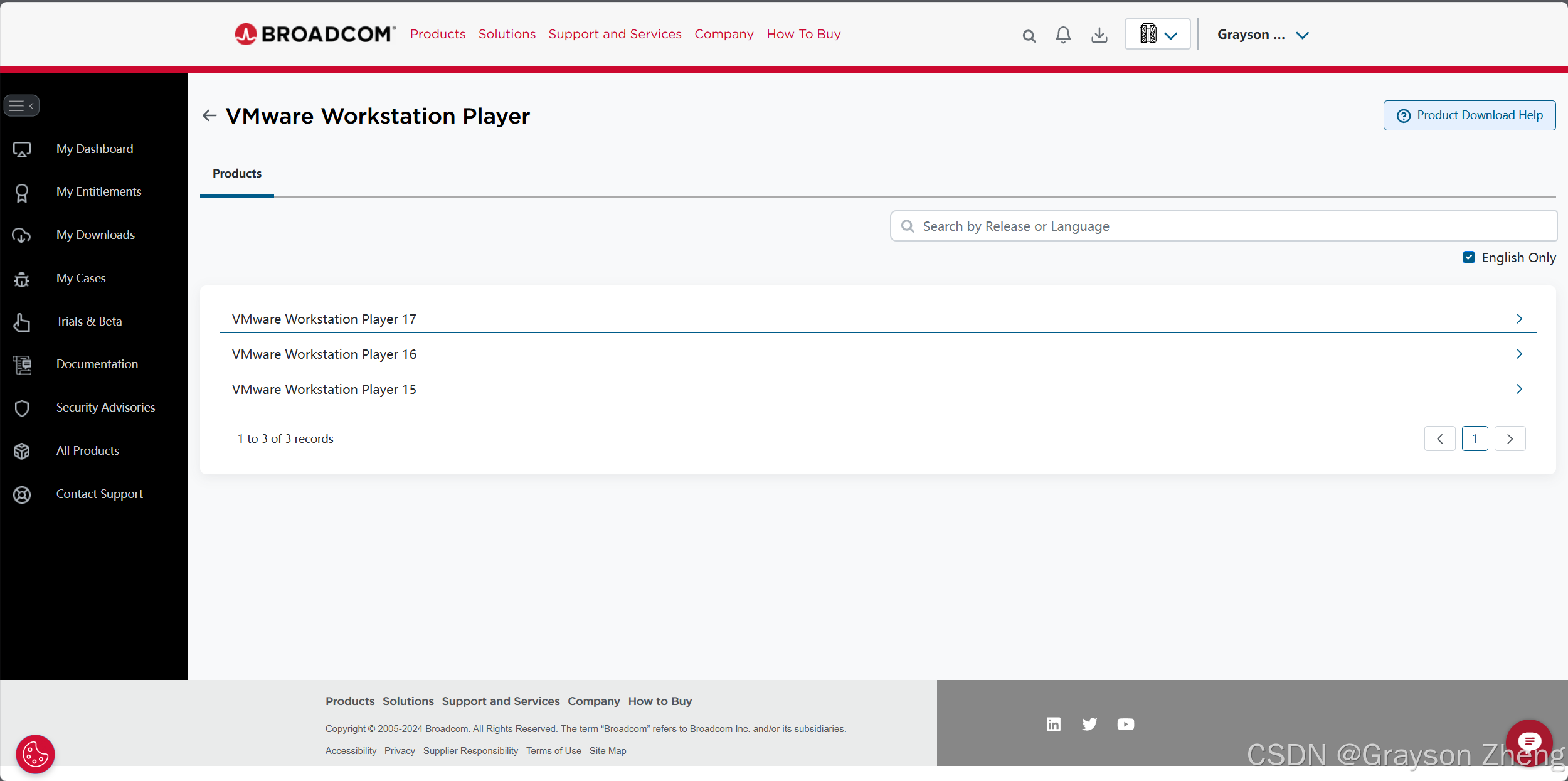 上面的下载链接已经不可用了,原因是2023年11月23日,芯片巨头博通(Broadcom)正式宣布完成对虚拟软件服务商 VMware 的收购,VMware 所有的产品都被 Broadcom 继承。因此,原 VMware 官网所有软件的下载地址变得不可用了。 新地址如下,不过需要先注册 Broadcom 的账号: VMware Workstation Player(个人版)
