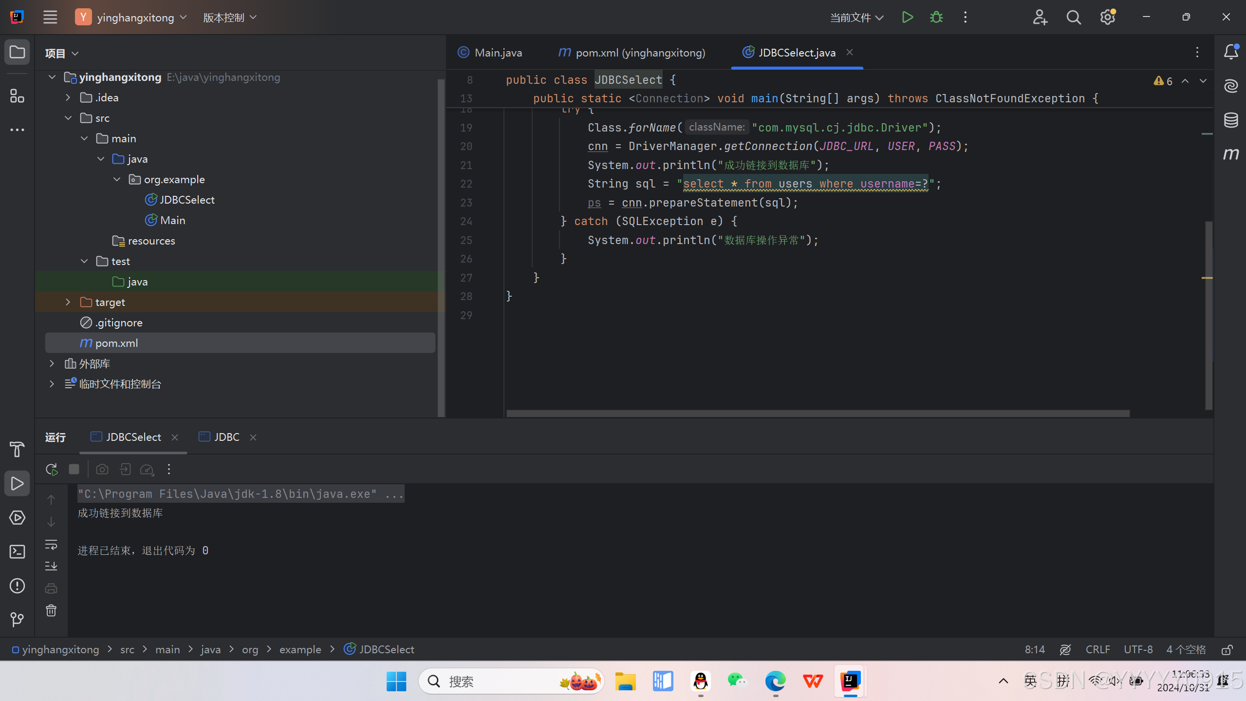 后面就只需要再运行一遍JDBCSelect。.java就行了,运行结果如下