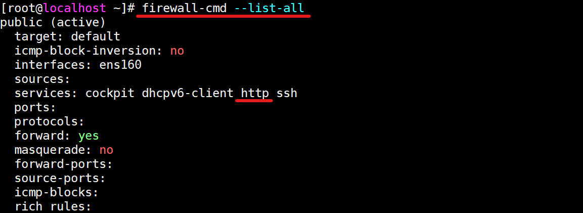 firewall-cmd –permanent –add-service=http:永久添加允许 http 服务规则