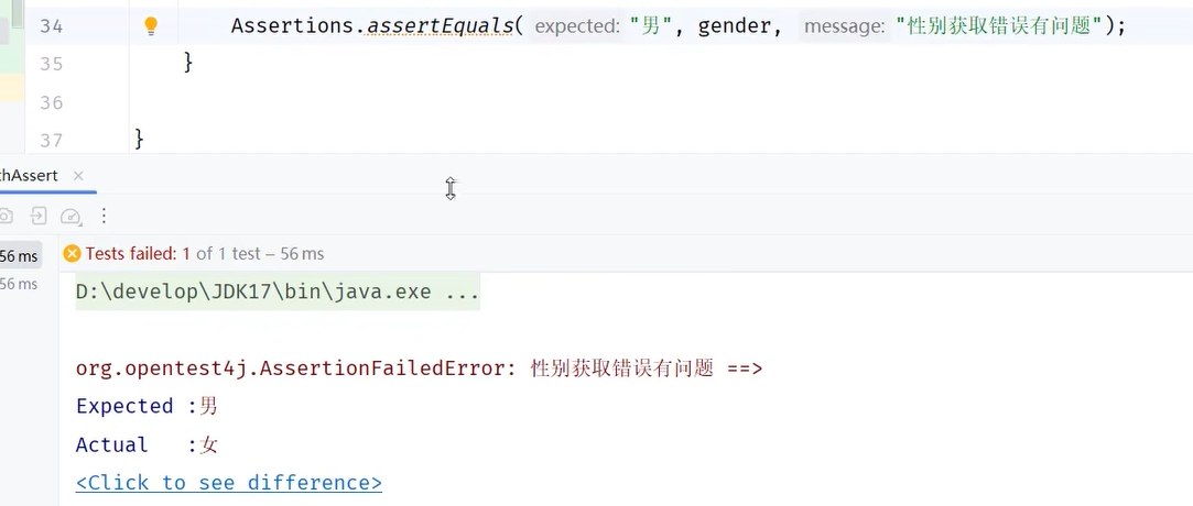 Assertions.assertEquals("男", gender, "性别获取错误有问题");