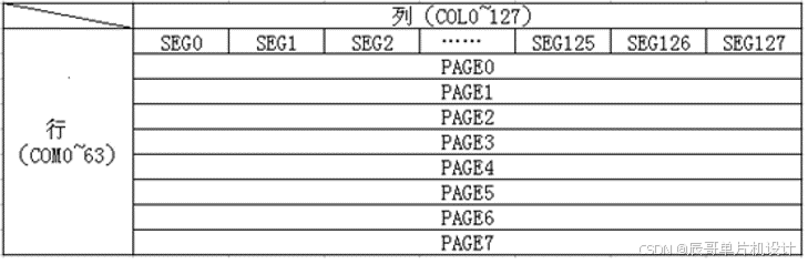 SSD1306的显存总共为128*64bit大小,其将这些显存分为了8页。每页包含了128个字节,总共8页,这样刚好是128*64的点阵大小。
