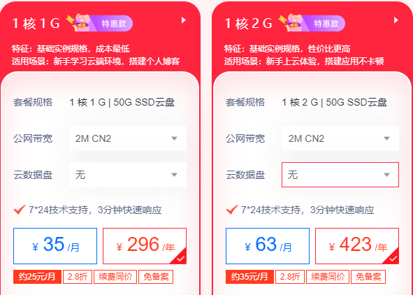 – 网硕互联:最便宜的香港地区 1核1G,每月大约需要37港币,35元一个月。
