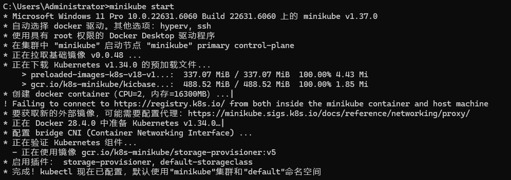 3.2 输入 minikube start 启动群集