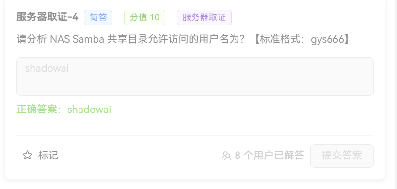 4.请分析nas服务器samba应用共享目录允许访问的用户名为?[标准格式:gys666]