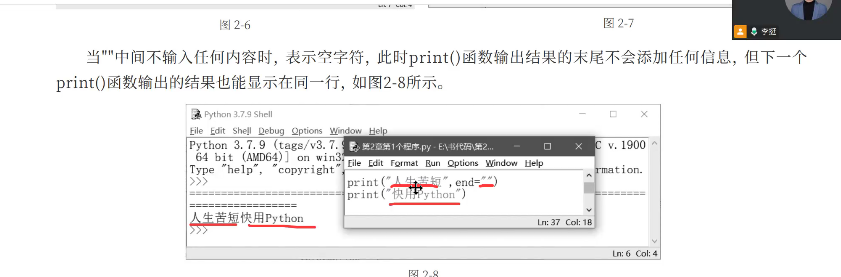(5)输出末尾设置end参数,它默认值是\\n(换行符),所以每次print输出后会自动换行。如果想改变输出后的行为,比如让内容不换行或在末尾加其他字符,可以修改end参数的值。连接输出通过设置end='##',可以让两个print语句的输出用"##"连接起来;若设为end=''(空字符串),则直接拼接输出内容。