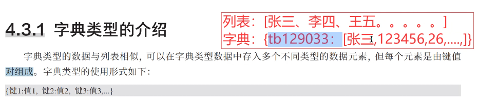 字典是通过键(key)来访问值(value)的,而不是像列表那样通过下标(index)。