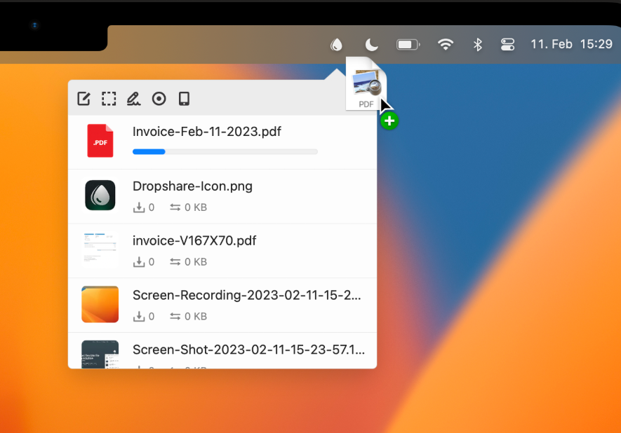 它的实现方式直观得惊人:全局拖拽。无论你在阅读文档、浏览网页还是编辑代码,当你看到任何想分享的内容(图片、文本片段、PDF文件),你只需将其拖拽到屏幕顶部菜单栏的一个常驻图标上,然后松手。是的,整个过程到此结束。上传在后台静默开始,而你,可以立刻回到被打断之前的工作状态中。
