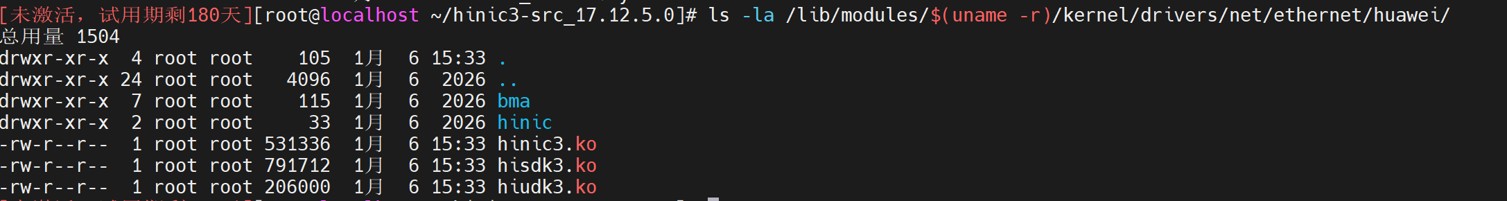 # 3. 验证复制结果 ls -la /lib/modules/$(uname -r)/kernel/drivers/net/ethernet/huawei/