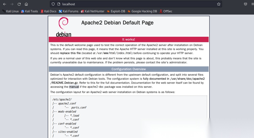 通过kali浏览器打开,尝试访问,观察apache是否启动成功