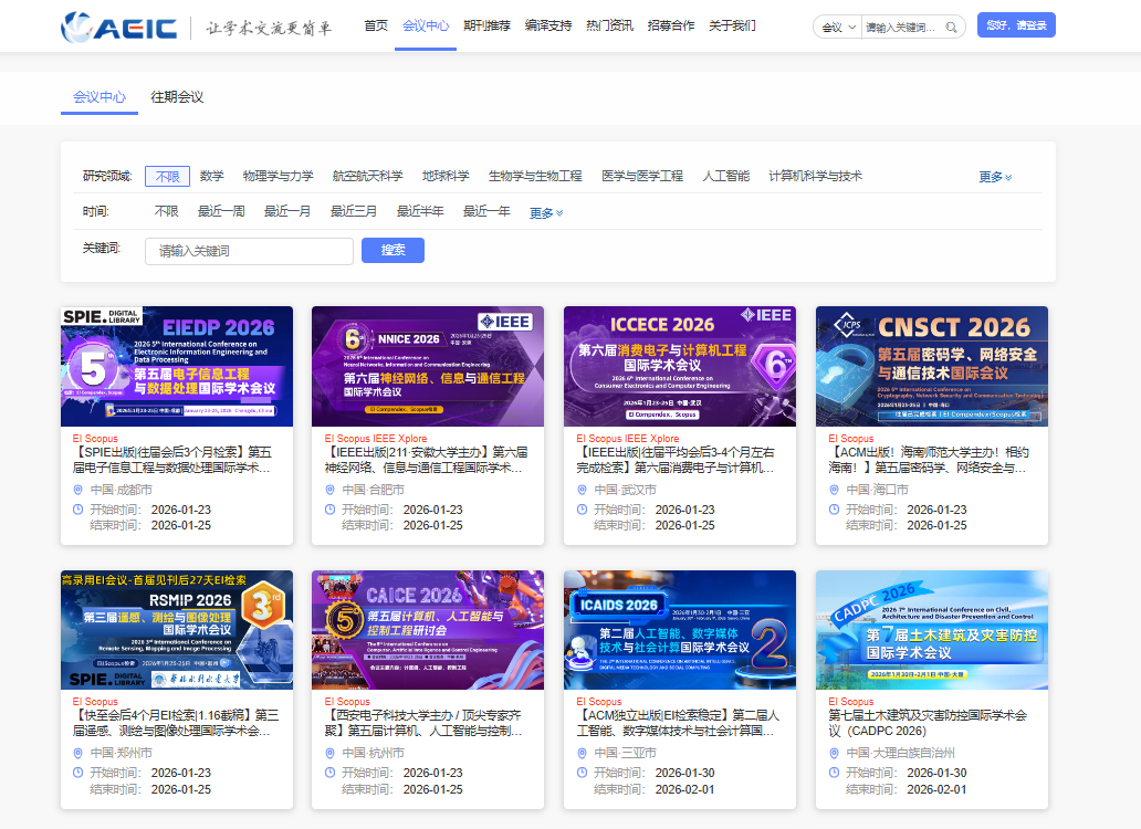 AEIC学术交流中心(简称“AEIC”),整合全球高校、科研院所及学术机构等专业学术资源,以“忠于学术,服务学者”为理念,致力于科技信息传播、学者科研交流、社会热点深剖等与学术相关交流活动,打造国际学术高端交流平台,让学术交流更简单。