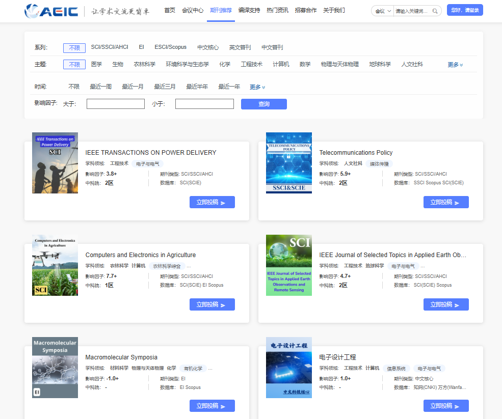 AEIC与多家世界知名出版集团建立了良好合作关系,通过学术会议形式征集论文进行发表,实现EI/CPCI检索;同时遴选优秀论文发表至SCI,SSCI期刊。