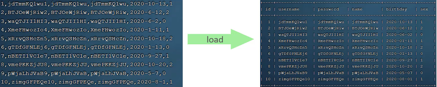 注意:使用 load 指令批量插入数据时建议使用顺序插入,主键顺序插入性能高于乱序插入