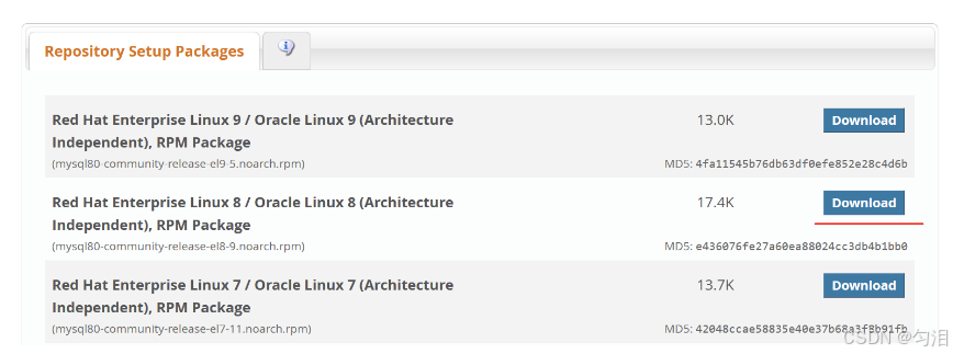 # 下载MySQL 8.0 Yum源包(以el8版本为例)