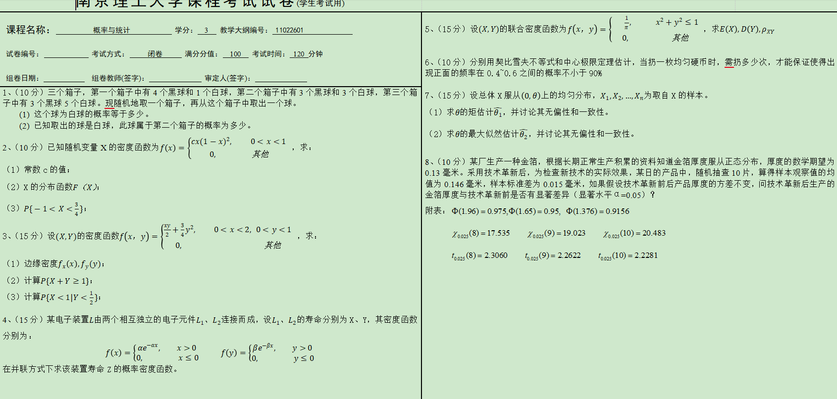 南京理工大学、南京大学概率论复习资料