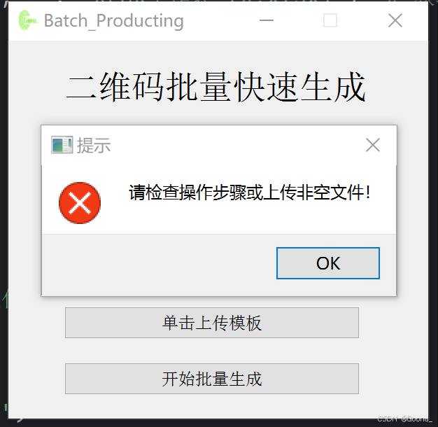 QtWidgets.QMessageBox.critical(None, "提示", "请检查操作步骤或上传非空文件!")