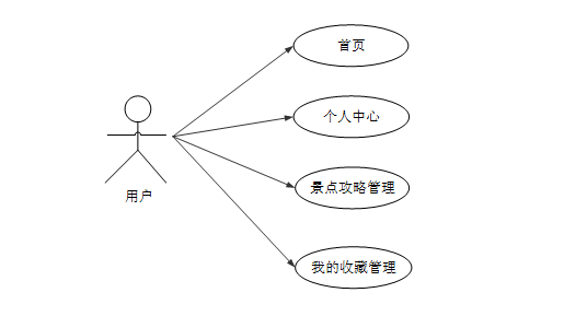 (b) 用户;进入系统可以实现首页、个人中心、景点攻略管理、我的收藏管理等功能进行操作。用户用例图如图3-2所示。