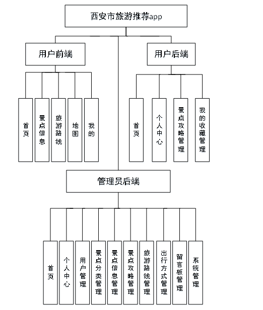 考虑到实际生活中西安市旅游推荐app方面的需要以及对该平台认真的分析,将系统权限按管理员和用户这两类涉及用户划分。