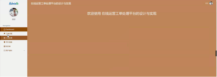 用户模块的主要设计是:在登陆成功后,本系统实现对工单信息、工单分配、工单处理、评价信息、用户资料等功能进行详细操作;