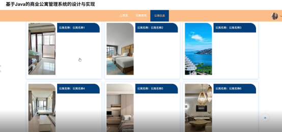 租户点击公寓信息按钮,进入到公寓信息界面。租户可以查看不同类型的公寓信息,可点击公寓名称查看详情信息,可申请入住。