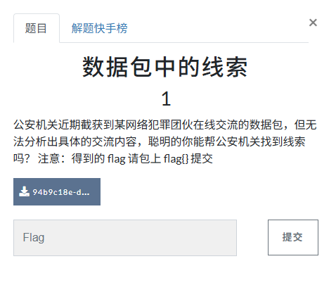 公安机关近期截获到某网络犯罪团伙在线交流的数据包,但无法分析出具体的交流内容,聪明的你能帮公安机关找到线索吗? 注意:得到的 flag 请包上 flag{} 提交