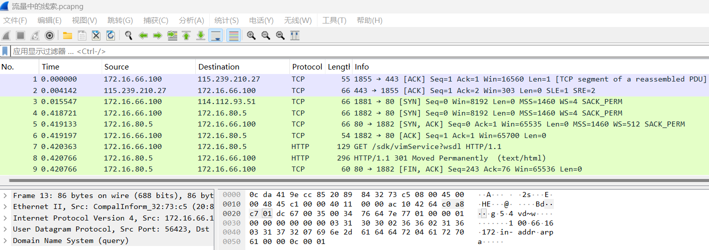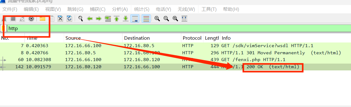 1、双击.pcapng文件,进入Wireshark中。