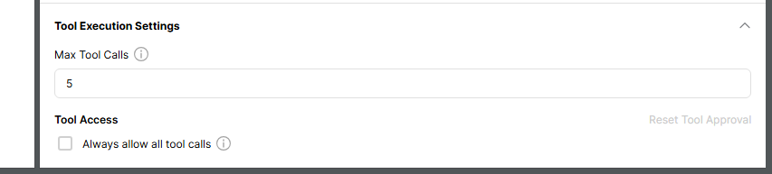 在MCP服务器设置面板底部,可以找到"Tool Execution Settings"(工具执行设置)模块。该区域专门用于调整AI助手在使用MCP工具时的交互行为。