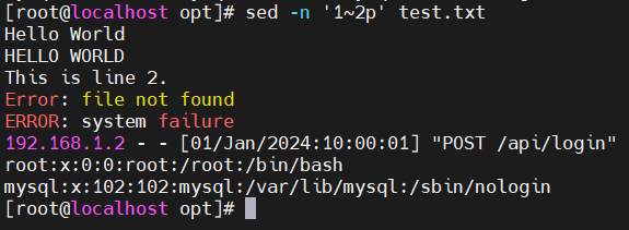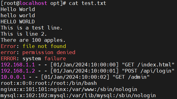 2.sed(stream editor):流式编辑器,核心作用是流式编辑文本(替换、删除、插入、追加等),默认仅输出处理结果,而不修改原文件。