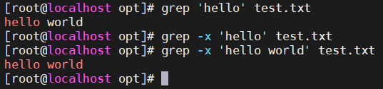 - -x —— 匹配整行,以关键字作为整行内容进行匹配