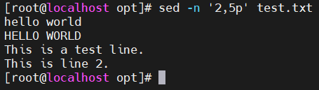 - -n '2,5p' filename —— 打印二到五行
