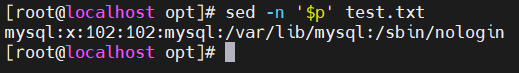 - -n '$p' filename —— 打印最后一行