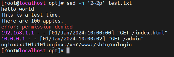 - -n '2~2p' filename —— 打印偶数行(从第2行开始每隔2行打印)
