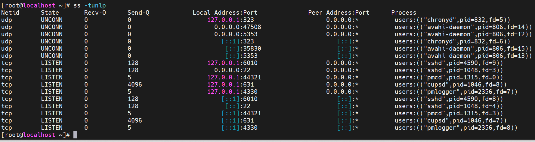 2、netstat 在之前老版本的linux可能使用,这里不截图了,netstat比较慢