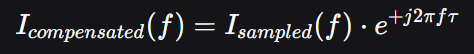 这个旋转因子只改变复频谱的相位角,而不改变其幅度。它在每个频率点 f 上,都将真实电流的相位向后旋转了 2πfτ 弧度。
