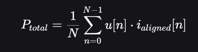 * 公式:P = (1/N) * Σ(u[n] * i[n])