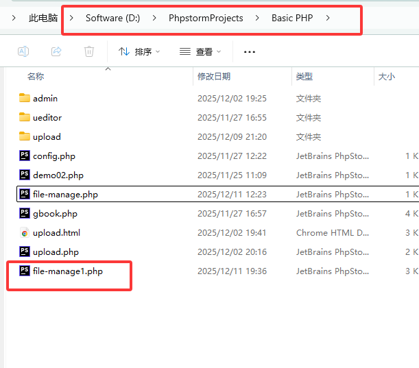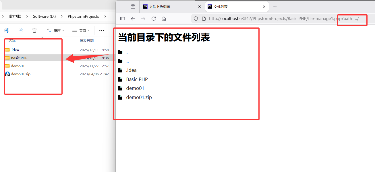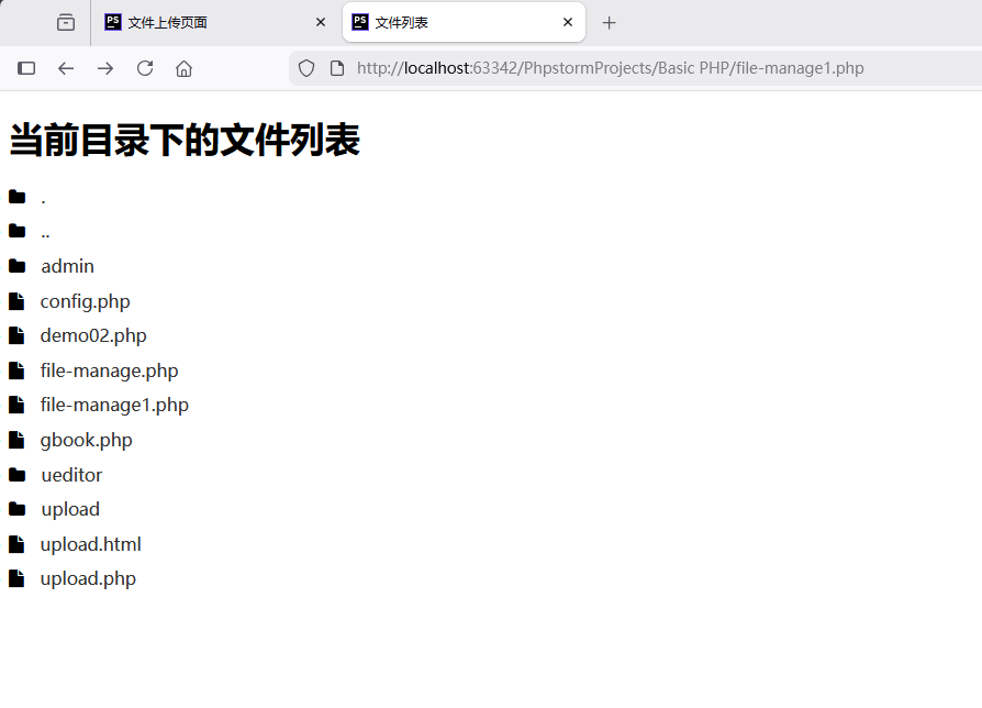 我们代码当前所处在D:\\PhpstormProjects\\Basic PHP目录中,所以我们web页面就自然的显示当前目录下的所有文件