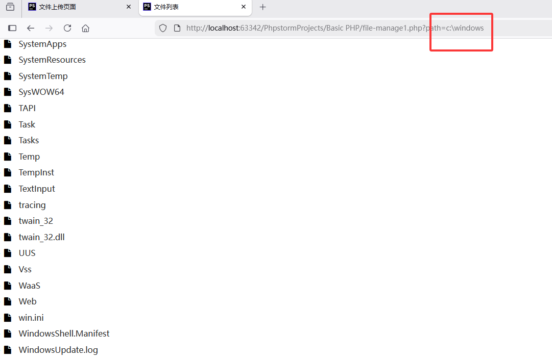http://localhost:63342/PhpstormProjects/Basic%20PHP/file-manage1.php?path=c:\\windows