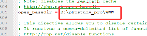 我们取消注释,然后限制基础目录在D:\\phpstudy_pro\\WWW目录下面,注:改完配置文件后记得在phpstudy重启一下环境