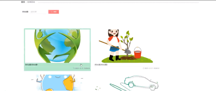 环保活动:在环保活动页面输入活动主题进行查询报名和提交,并根据需要进行报名和提交操作;如图5-3所示: