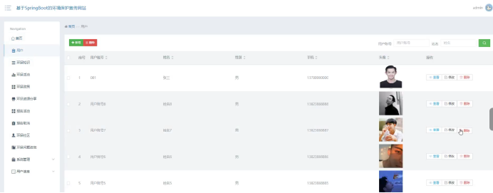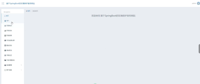 管理员登录进入系统直接管理用户、环保知识、环保活动、环保政策、环保资源分享、报名活动、报名取消、环保社区、环保问题咨询、系统管理、用户信息等信息。本网站模块设计的独立性强,用户体验良好、后期维护修改管理十分方便。