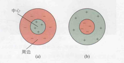 后来的研究者们记录了猫的视神经纤维信号,并发现了感受野的“中心-周边结构”(Barlow,Fitzhigh和Kuffler,1957;Hubel和Wiesel,1965)。使用下图9可以说明这一结构,在图(a)中的感受野中,当光点照射中心区域时,放电活动增强,因此该中心区域被称为感受野的兴奋区。相反,刺激周边区域会导致放电率下降,故此区域被称为感受野的抑制区;而在图(b)的感受野中,情况则截然不同,中心区域受到刺激时表现为抑制,周边区域受到刺激时则表现为兴奋。