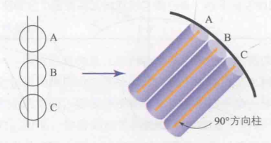 初级视觉皮质是如何对整个视野进行反应的呢?初级视觉皮质内含有众多定位柱,每个定位柱分别对应视野中的不同位置。这些定位柱相互协作,共同作用,从而实现对整个视野的全面覆盖,这一现象被称为平铺效应。对于长条形物体,能够激活相邻定位柱中相同方向的方向柱,而这些方向柱必须被有效组织,才能形成对该物体的完整知觉。