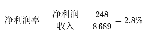 净利润率说明:每100元销售收入,在扣除所有费用后还剩多少,也称为销售回报率(ROS)。