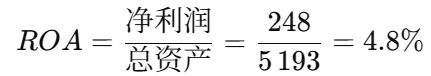 ROA 表示:每投入100元资产能创造多少利润。