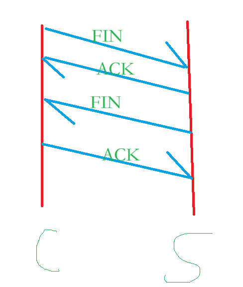 客户端要和服务器进行断开连接了,此时客户端发报文(标志位有:FIN),此时服务端收到这个报文,服务端的应答报文(标志位有:ACK)发给客户端,此时服务端也要断开连接,向客户端发起报文(标志位有:FIN),那么客户端的应答报文(标志位有:ACK)发给服务端;这个过程就是 4 次挥手;