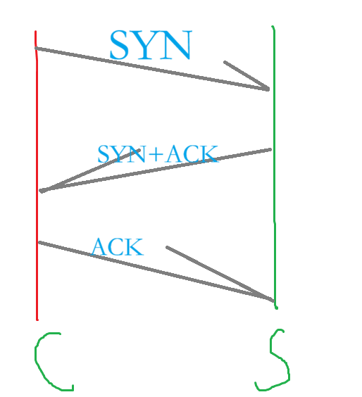 客户端向服务端发送请求连接的报文,这个报文的标志位有:SYN(就是把 SYN 置为 1,其余标志位置为 0),此时服务端收到这个报文也给客户端发给了报文(就是应答),这个报文的标志为有:SYN 、ACK,意思是说:我同意并且我也要和你进行连接,此时客户端收到这个报文之后,客户端的应答报文的标志有:ACK,意思就是说:好的;