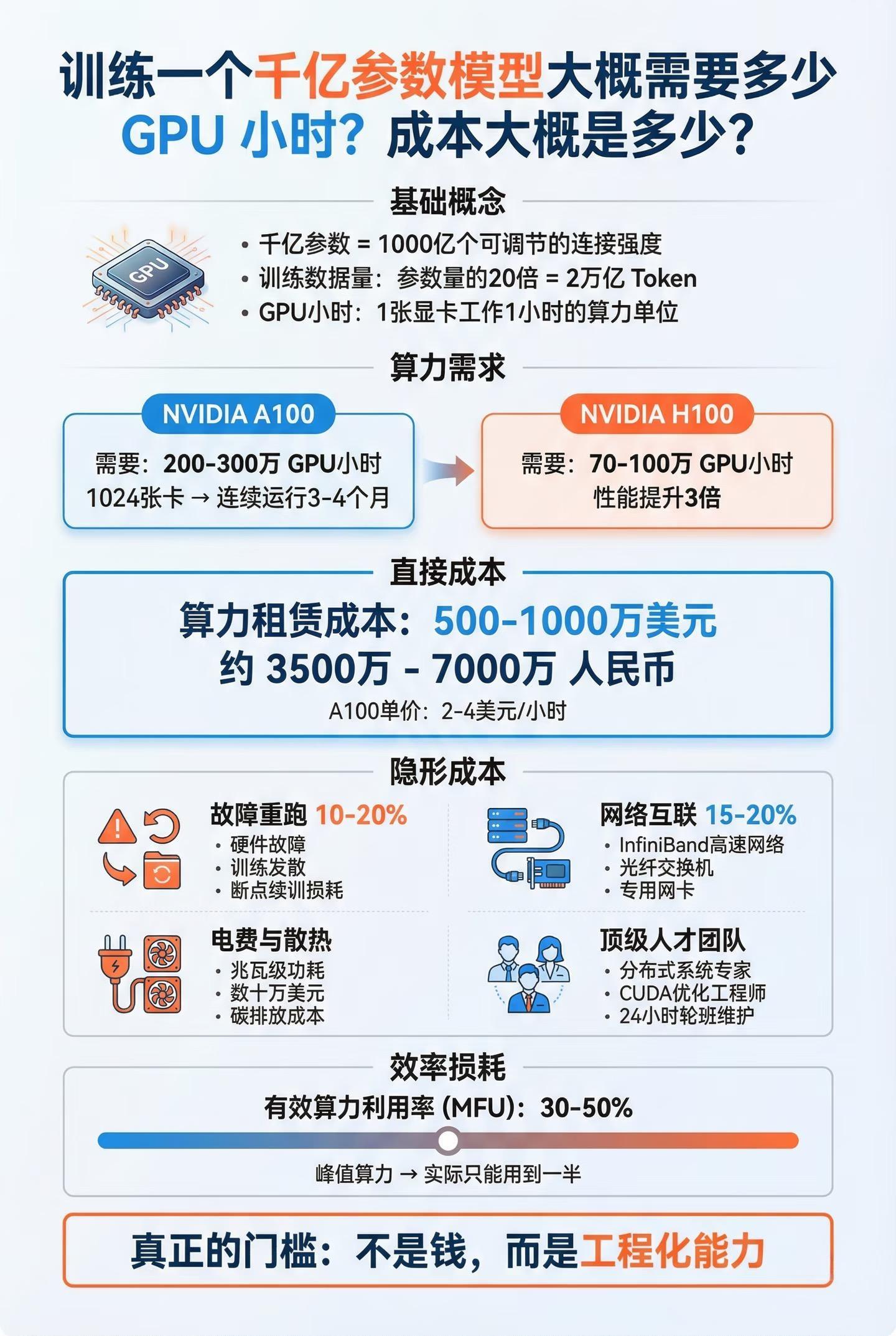 训练一个千亿参数模型,需要多少GPU小时?成本大概是多少?
