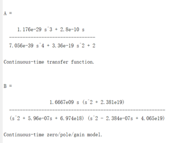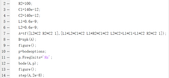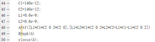 代码:(注意因为电容电感值比较小可以能会被忽略,使用tf再用zpk会有更好的效果)