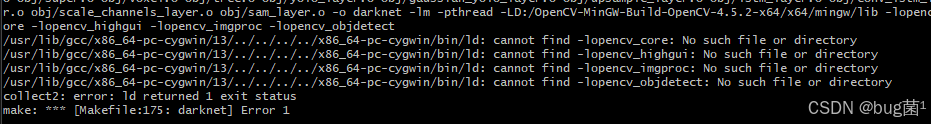 详细问题描述如下:使用Cygwin64编译darknet.exe报错,是不是opencv下却是这几个包,需要重新下载opencv吗?