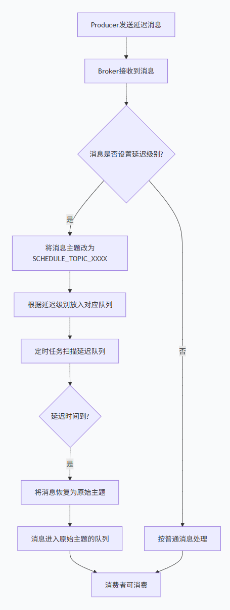 | 未处理超时 | 业务逻辑未处理延迟消息 | 消费端需判断 msg.getDelayLevel() |